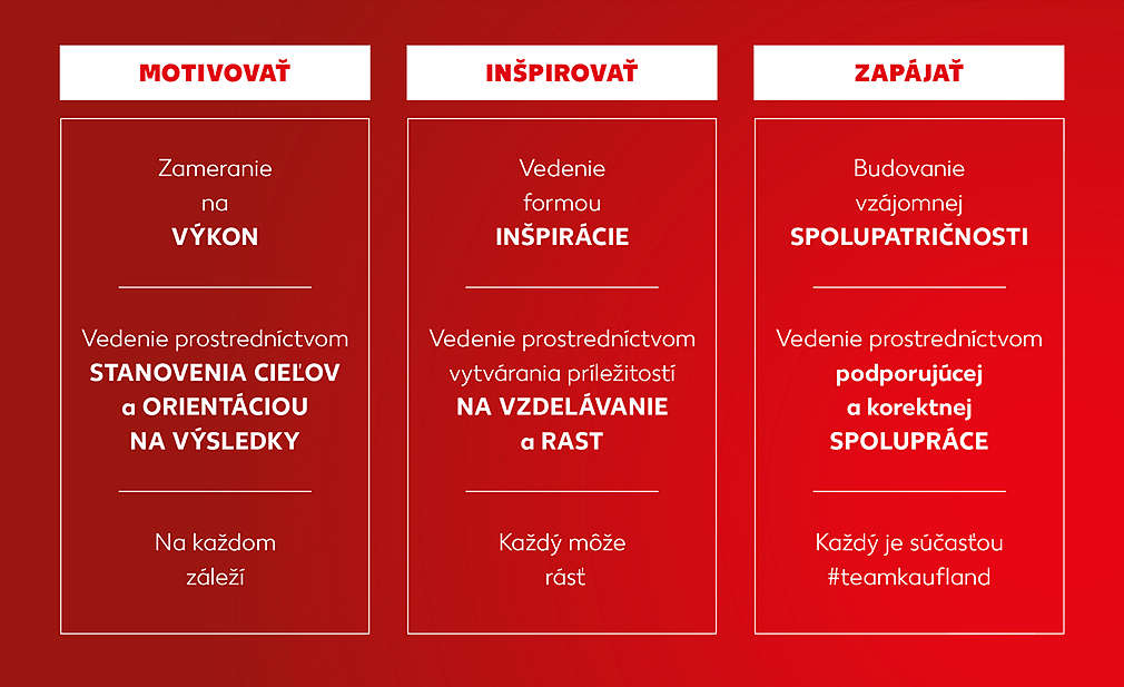 Úlohou každého nadriadeného je dôsledne prispôsobiť svoje správanie k našim hodnotám a byť vzorom pre zamestnancov pri ich presadzovaní. Všetko, čo robíme a akým spôsobom to robíme, nás stavia do roly ambasádorov a vzoru.